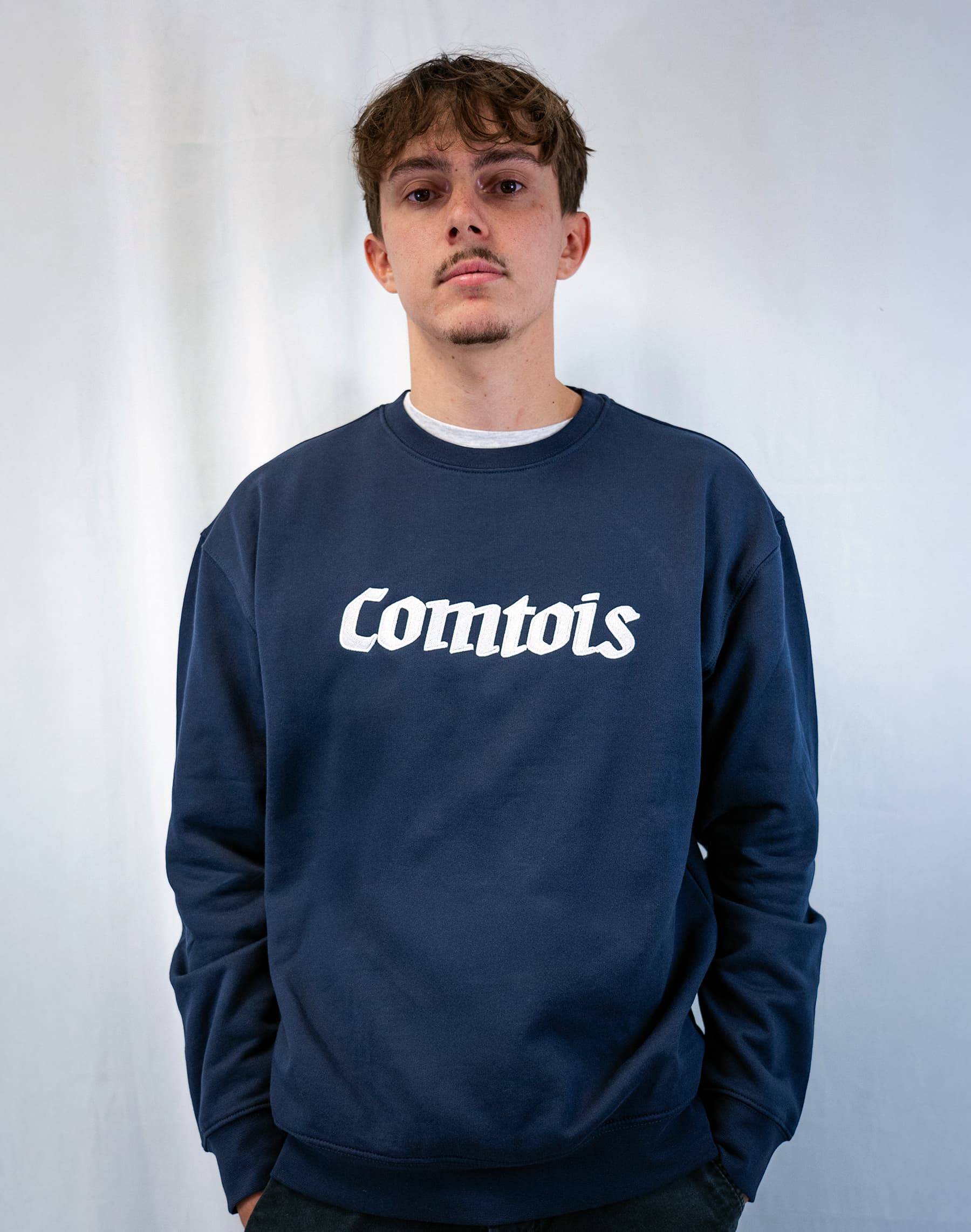 Ătre supporter du FCSM, câest une chose. Ătre Comtois, câen est une autre ! Ce sweat bleu marine, avec sa broderie blanche "Comtois" au centre du torse, affirme ton attachement Ă tes racines avec simplicitĂ© et caractĂšre. Pas besoin dâen faire des tonnes, ici, tout est dit en un mot.